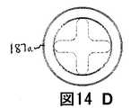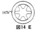 フィードウォンド160の別の態様が図14A〜14Fに示されている。図14A〜14Fの態様において、排出要素166は、逆U字形を有する支持要素185によって、シャフト170に装着されたローラーピン183として実現されている。図14A〜14Fの態様において、任意選択の多重スロットバッフルディスク(multi-slot baffle disk)189を、テーパー付き導管の上方部分に配置して、下部ハウジングセクション150aに取り付けることができる。  Another embodiment of the
