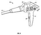 代替的に、デジタルディスプレイ62は、または入力デバイス(図示せず)もしくはボタンを使用して外科医によって選択的に事前に設定され、入力され得る。外科医はディスプレイ62にクランピングの期間を入力し得る。その後、ディスプレイ62はクランピング期間の経過時に発射を勧めるか、または(例えば、約10〜45秒間のような)所定のクランピング期間が経過した後で、自動的に発射し、適切な組織の圧縮を確かなものにし得る。デジタルディスプレイ62は、所定のクランピングの設定時間からカウントダウンするように構成され、コントローラ28に信号を視覚的に伝え得る。信号を受信した後、コントローラ28は所望の期間のクランピングが経過することを可能にする。設定された期間が終了すると、コントローラ28は第2の信号を伝え、ステープルカートリッジ21を作動し得る。代替的に、コントローラ28は、所望の期間の終了時にステープルカートリッジ21を作動することに適した速度で動作を開始するために、モータの速度を単に調節し得る。またさらに別の実施形態において、デジタルディスプレイ62は組織のクランピングの開始後に数えることを開始するように構成され得、そして、その時点からの先の時間を単に表示することにより、外科医が監視し、所望の期間の終了時にトリガスイッチ26を手動で作動することを可能にする。その後、デジタルディスプレイ62は外科医に対して圧縮時間と正確な経過期間とを単に表示し得るか、または発光し得る。機器は所定の遅延を提供し、それから機器が手動で発射される準備ができているということを示し得るか、または代替的に、機器が遅延し、それから示し、そして自動的に発射し得るということが理解される。 Alternatively, the