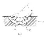 言い換えると、垂直加圧入力(PP)は、図2に示されているように、指の接触面(斜線を引いた領域)の周囲に所定の垂直加圧位置が設けられ、垂直加圧位置に指を垂直加圧することによって行われる。 In other words, as shown in FIG. 2, the vertical pressure input (PP) is provided with a predetermined vertical pressure position around the finger contact surface (a hatched area). This is done by applying vertical pressure to the finger.