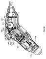 図4(b)はまた、複合かさ/平歯車構成要素541も図示する。複合かさ/平歯車構成要素541は、カートリッジ筐体連結部535における対応して寸法設定および成形された開口内で、その遠位端5411において回転可能に載置されるように構成される。加えて、複合かさ/平歯車構成要素541は、その中間領域に沿って、外周の歯を有する平歯車5412を含む。外側遊び歯車539の外周の歯は、複合かさ/平歯車構成要素541の平歯車5412の外周の歯と咬み合って係合するように構成される。また、複合かさ/平歯車構成要素541は、その近位端において、傘歯車5413も含む。 FIG. 4 (b) also illustrates a composite bevel /