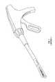 そのような実施形態では、外科用装置は、第1の回転型駆動軸が、第2の回転型駆動軸との第1のドライバの係合を引き起こすと、第1の回転方向への第2の回転型駆動軸の作動が、ハンドルに対して、およびハンドルの長手軸の周りで、第1の回転方向に軸部分の枢動運動を引き起こし、第2の回転方向への第2の回転型駆動軸の作動が、ハンドルに対して、およびハンドルの長手軸の周りで、第1の回転方向とは反対の第2の回転方向に軸部分の枢動運動を引き起こすように、配設されてもよい。また、外科用装置は、第1の回転型駆動軸が、第2の回転型駆動軸との第2のドライバの係合を引き起こすと、第1の回転方向への第2の回転型駆動軸の作動が、軸部分に対して第1の回転方向にジョー部分の枢動運動を引き起こし、第2の回転方向への第2の回転型駆動軸の作動が、軸部分に対して第1の回転方向とは反対の第2の回転方向にジョー部分の枢動運動を引き起こすように、配設されてもよい。さらに、外科用装置は、ジョー部分および軸部分がそれぞれの長手軸を画定するように配設されてもよく、ジョー部分は、ジョー部分および軸部分の長手軸に垂直である長手軸の周りで軸部分に対して枢動する。 In such an embodiment, the surgical device provides a second rotational direction in the first rotational direction when the first rotational drive shaft causes engagement of the first driver with the second rotational drive shaft. Of the rotary drive shaft causes a pivotal movement of the shaft portion in the first rotational direction relative to the handle and about the longitudinal axis of the handle, and the second rotational type in the second rotational direction. Arranged so that actuation of the drive shaft causes a pivoting movement of the shaft portion relative to the handle and about the longitudinal axis of the handle in a second rotational direction opposite to the first rotational direction. Also good. The surgical device also includes a second rotational drive shaft in the first rotational direction when the first rotational drive shaft causes engagement of the second driver with the second rotational drive shaft. Actuation of the jaw portion causes a pivoting movement of the jaw portion in a first rotational direction relative to the shaft portion, and actuation of the second rotary drive shaft in the second rotational direction corresponds to the first rotational direction relative to the shaft portion. It may be arranged to cause a pivoting movement of the jaw part in a second direction of rotation opposite to the direction of rotation. Further, the surgical device may be arranged such that the jaw portion and the shaft portion define respective longitudinal axes, the jaw portion being around a longitudinal axis that is perpendicular to the longitudinal axis of the jaw portion and the shaft portion. Pivot with respect to the shaft part.