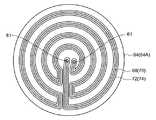 この場合には、加熱手段68を構成するヒータ素線70は、ゾーン毎に同心円状に複数に分割されており、各分割されたヒータ素線毎に電力インと電力アウトの2つのヒータ給電棒が接続されることになる。そして、先の実施例と同様に各ヒータ給電棒毎に保護支柱管に挿通されることになる。図7は本発明の載置台構造において上述のように複数、例えば2つのゾーンにヒータ素線が分割された時の第2の変形実施例における下部の水平断面を示す模式図である。尚、先に図1〜図6を参照して説明した構成部分と同一構成部分については同一参照符号を付してある。 In this case, the