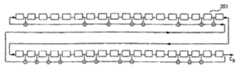 従来技術の巡回系列は、線形帰還シフトレジスタ(LFSR)回路を用いて生成される。しかし、この方法は均一な長さの系列を発生しない。すでに発生ずみの符号シードを用いる拡散符号系列発生器の一つの実施例を図2a、図2bおよび図2cに示す。この実施例のシステムは36段LFSR201を用いて周期 N'=233415=33×5×7×13×19の系列を生成する。この系列は図2aではC0である。図2a、図2bおよび図2cにおいて符号A prior art cyclic sequence is generated using a linear feedback shift register (LFSR) circuit. However, this method does not generate a uniform length sequence. One embodiment of a spreading code sequence generator using an already generated code seed is shown in FIGS. 2a, 2b and 2c. The system of this embodiment uses a 36-