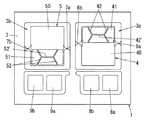 ここで、本実施形態では、枠部3a、重り部4、ビーム部6a,6b、可動電極4a、第1及び第2の固定電極20a,20b、検出電極80a,80bと、枠部3b、重り部5、ビーム部7a,7b、可動電極5a、第1及び第2の固定電極21a,21b、検出電極90a,90bとで各々センサ部が構成され、重り部4,5の向き(充実部40,50と凹部41,51の配置)を180度反転させた状態で2つのセンサ部が一体に形成されている。  Here, in this embodiment, the