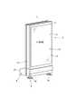 看板本体2は、高さが2メートル、幅が1メートル程度の縦長の扁平な直方体状の筐体8を有し、その内部に液晶ディスプレイ10が表示面11を正面に向けて納められている。この表示面11に対向する筐体8の正面は大きく開口し、その開口には内部を視認可能に透明な硬質のガラス板12(透明板)が嵌め込まれており、このガラス板12を通じて表示面11の全体を視認可能に構成されている。この表示面11には、各種映像や文字情報が表示され可変表示型の広告媒体として用いられる。また、看板本体2は、ガラス板12と筐体8の間にパッキンが配置されるなど密封構造を成し、街頭等の屋外での使用に耐える構造とされている。  The