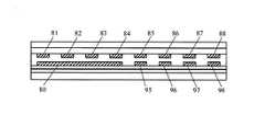 同様の製造工程を使用し、従来の表示パネル及び本発明の表示パネルを混合型として結合することができる。この混合型表示パネルは、図1及び図2の構造を結合して形成されることができ、図9に示すようになる。図9中、上電極85,86,87,88及び下電極95,96,97,98は、表示及びタッチの二重の機能を果たすことができる。上電極81,82,83,84及び共用下電極80は、表示電極としてのみ用いることができる。  Using the same manufacturing process, the conventional display panel and the display panel of the present invention can be combined as a mixed type. The mixed display panel can be formed by combining the structures shown in FIGS. 1 and 2 and is as shown in FIG. In FIG. 9, the