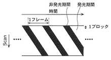 前述したように、駆動ブロックとは、複数の発光画素行で構成され、表示パネル10の中には2以上の駆動ブロックが存在する。例えば、図5に記載された各駆動ブロックは、m行の発光画素行で構成されている。  As described above, the drive block includes a plurality of light emitting pixel rows, and two or more drive blocks exist in the