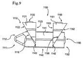 同様に、駆動ねじ1183が図7に矢印CCで示されているように回転した場合、器具係合部材1182の係合面1186は、近位保持部材1160の第1の係合面1162に軸力を掛ける。器具係合部材1182の係合面1186は、長手方向軸ALに対して鋭角なので、係合面1186を介して近位保持部材1160の第1の係合面1162に伝達される軸力の成分は、図8に矢印AAで示されている方向を有する。換言すれば、器具係合部材1182により近位保持部材1160に掛けられる力の成分は、長手方向軸ALに略垂直な方向を有する。この力により、近位保持部材1160は、器具係合部材1182の係合面1186上を滑動し、近位保持部材1160は、方向AAに移動し、第2の構成へ移行する。近位保持部材1160が器具係合部材1182の係合面1186上で所定の距離を滑動すると、器具係合部材1182の係合面1186の一部が、中央部分1140の近位係合面1142に接触し、近位保持部材1160がさらに滑動するのを防止する。Similarly, when the