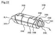 図22〜図23は、実施形態による、インプラント3100を示す。図22に示されている通り、インプラント3100は、作動装置3111と、遠位保持部材3120と、中央部分3140と、近位保持部材3160と、器具係合部材3182とを含む。作動装置3111、遠位保持部材3120、中央部分3140、および近位保持部材3160の構造および動作はそれぞれ、作動装置2111、遠位保持部材2120、中央部分2140、および近位保持部材2160の構造および動作に類似している。したがって、器具係合部材3182のみが以下に詳細に記載される。  22-23 illustrate an