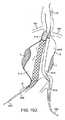本明細書で述べるプロテーゼのどれも、動脈瘤を治療するために、ePTFE二重壁の充填可能な構造など、織物またはポリマーのカバーと共に使用することができる。二重壁の充填可能な構造は、米国特許出願公開第2006/0025853号で開示され、そのコンテンツの全体を参照により本明細書に組み込む。図15A〜15Fは、本明細書で述べたものなど、2つの内部フレームを用いて動脈瘤を治療する例示的な方法を示している。各内部フレームは、二重壁の充填可能な構造を用いて組み合わされている。図15Aは、腎動脈RAと腸骨動脈IAの間に位置する腎動脈下腹部大動脈瘤(AAA)の解剖学的構造を示す。動脈瘤性嚢は、その内部表面部分にわたって壁在性血栓Tの部位を有する可能性がある。  Any of the prostheses described herein can be used with a fabric or polymer cover, such as an ePTFE double wall fillable structure, to treat an aneurysm. A double wall fillable structure is disclosed in