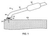 追加の要素。図1に示されるように、好ましい実施形態のエネルギー送達システム10はまた、遠位チップアセンブリ48に連結された細長い部材18を含む。好ましい実施形態の細長い部材18は、遠位チップアセンブリ48とハンドル50とを有するシャフトである。細長い部材18は、好ましくは、遠位チップアセンブリ48にハンドル50を連結し、その結果、遠位チップアセンブリ48(および/またはエネルギー源12)は、組織276の表面に沿って動かされる。シャフトは、たわみ軸(flexible  shaft)であり、その結果、シャフトは曲げられ、所望の構成に位置を決められる。シャフトは、好ましくは、再度曲げられるかまたは代替の所望の構成に再度位置を決められるまで、所望の構成のままである。細長い部材18は、様々な位置に細長い部材18を曲げるかまたは位置を決めるように(図1に示されるように、組織276の方に細長い部材18の遠位部分を曲げるなど)機能を果たす曲げ機構をさらに含み得る。曲げ機構は、好ましくは、複数本のワイヤ、リボン、ケーブル、ひも、繊維、フィラメントまたは任意の他の引張り部材を含む。代わりに、細長い部材18は、固定もしくは剛体のシャフトまたはグーズネック型シャフトなどの任意の他の適切なシャフトであり得、グーズネック型シャフトは、シャフトを曲げ、シャフトの位置を決めるために互いに対して動き、軸方向に整列させられる複数の部分を含む。シャフトは、好ましくは複数内腔管(multi−lumen  tube)であるが、代わりに、カテーテル、カニューレ、管、または1つ以上の内腔を有する任意の他の適切な細長い構造であり得る。好ましい実施形態の細長い部材18は、プルワイヤ、流体、気体、エネルギー送達構造、電気的接続、および/または任意の適切なデバイスまたは要素を収容するように機能を果たす。  Additional elements. As shown in FIG. 1, the