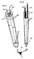 上記細長構造体の形状は、また、最初に製造した後、変更または改良されてもよい。例えば、プラスチック製またはガラス製の細長構造体を最初の細長形状に成形し、その後に長く薄い大きさに引き伸ばす。この時の方法および用具は、細胞内の電気的記録用のガラスピペット電極を特別に作成するために、神経科学実験室で一般に使用されるものである。上記方法を使って、ガラスシリンダーの小領域が加熱された後、直線的に引き伸ばされる。適切な長さおよび低減した直径で、マイクロピペット/電極ガラスを切断する。上記製造方法および製造を容易にする器具類(市販されている)は同様に、適切な長さおよび直径を有する細長構造体の製造方法に役立つが、違う点は、内形成された電子素子類(ダイオード自体を含む)を有する円筒形レンズが、微少電極作成用の上記ガラスシリンダーに代わることである。この同じ方法で、プラスチック製の細長構造体についても、ガラス製と同様に加熱して引き伸ばすか、または硬化前にプラチックを引き伸ばして製造してもよい。 The shape of the elongated structure may also be changed or improved after initial manufacture. For example, an elongated structure made of plastic or glass is formed into an initial elongated shape, and then stretched into a long and thin size. The methods and tools at this time are those commonly used in neuroscience laboratories to specially create glass pipette electrodes for intracellular electrical recording. Using the above method, a small area of the glass cylinder is heated and then stretched linearly. Cut micropipette / electrode glass with appropriate length and reduced diameter. The above manufacturing methods and instruments that facilitate manufacturing (commercially available) are also useful for manufacturing elongated structures having appropriate lengths and diameters, except that the electronic devices formed therein A cylindrical lens (including the diode itself) is an alternative to the glass cylinder for making microelectrodes. By this same method, the elongated structure made of plastic may be heated and stretched in the same manner as in the case of glass, or may be produced by stretching plastic before curing.