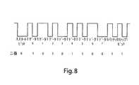 本発明はデータビットを符号化するための基本的に任意の方法を利用することができる。図示された実施形態では、二次電力回路60はデータビットを生成するために差動二位相符号化技術を用いる。その技術は偏移(transition)に基づいており、全てのクロックエッジにおいてエッジが生じる。クロック周期の中心において偏移が有るか無いかによってデータビットが区別される。クロック周期の中心において偏移が生じるとデータビットは「1」になり、生じないとデータビットは「0」になる。符号化技術は偏移に基づくので「複数の0」及び「複数の1」と関係なく両極性がデータ変調に用いられる。データバイトは、標準の非同期のシリアルフォーマット(1ビットのスタートビット、8ビットのデータビット(LSBファースト)、1ビットの奇パリティビット、1ビットのストップビット)を用いて形式を合わせることができる。この実施形態では、スタートビットは「0」であり、ストップビットは「1」である。図8は、差動ニ位相符号化を用いて符号化されたデータの代表例である。図示された実施形態では、データはパケットフォーマットで二次電力回路60から誘導電源12へ送られる。パケットは、プリアンブル、ヘッダバイト、ペイロードバイト(オプショナル)及びチェックバイトで構成できる(図9を参照)。図9に示されるように各バイトは11ビットで構成できる。この実施形態では、プリアンブルを含む完全なパケットの長さは最大31バイトまでである。プリアンブルにより、誘導電源は入力データを同期させ、データの第1バイトのスタートビットを正確に判定することができる。この実施形態のプリアンブルは少なくとも3ビット(この場合、全て「1」)で構成すればよいが、この実施形態において、標準のUARTが通信を駆動し、そのプリアンブルを送ることができる長さである11ビットとしてもよい。ヘッダはパケットのタイプを定義するシングルバイトである。パケットタイプフィールドはそのパケットの長さを判定するために用いることができる。ペイロードはパケットを用いた通信の主要なデータを含む。パケットタイプはペイロードの内容及びサイズを指示することができる。受信したデータパケットを認証する方法として、パケットにチェックバイトを含むことができる。チェックバイトは、エラー検出を可能にするために全てのパケットの最後に付加することができる。チェックバイトは、ヘッダからペイロードの最後のバイトまでそのバイトを含む全てのバイトの「排他的論理和をとること」により生成することができる。図示された実施形態では、プリアンブルはチェックバイトの算出には含まれない。本発明は特定の通信システムに関して詳細に記述されるが、本発明は二次電力回路60から誘導電源12へのデータ通信に適した基本的に任意の通信システムを利用することができる。  The present invention can utilize essentially any method for encoding data bits. In the illustrated embodiment,