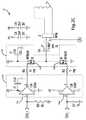 電流検知変圧サブ回路54は、タンク回路34と結合され、タンク回路34内の電流量を示す信号をコントローラ32に供給する。図示された実施形態では電流検知変圧サブ回路54は、図2A−Eに示されるようにその出力がコントローラ32に到達する前にさまざまな調節部品及びフィルタ部品を通過する電流検知変圧器55を含む。コントローラ32は、(以下でより詳細に記述されるように)電磁場に伝送されるデータ信号を復調するためのほか、例えば過度の電流引き込みなどの故障状態を識別するために電流検知変圧サブ回路54の出力を用いてもよい。故障状態の場合、コントローラ32は、例えばシステムを停止又は故障状態を解消する目的でその動作パラメータを変更することにより是正装置を取ってもよい。  The current detection transformer subcircuit 54 is coupled to the