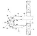 一対の鉗子片105,106のそれぞれには、スリット110,111が長さ方向に沿って形成されている。第二の鉗子片106のスリット111内には、中空の針112が配置されている。アンカー保持具として機能する針112の先端側の端部112Aは、第二の鉗子片106の先端部分に配され、ピン113で第二の鉗子片106に回動自在に支持されている。針112の基端側は、スリット111の基端側に配され、鋭利な端部112Bになっている。図37及び図38に示す状態では、針112の全体が閉状態の第二の鉗子片106のスリット111内に収容されている。針112は、シース102の長手方向と略平行になっており、かつ鋭利端端部112Aがシース102の基端側、つまり近位端側に向けられている。