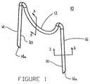 図1を参照すると、一般的に10として示される本明細書により開示されるバックスパンが拡大可能なステープルは、バックスパン12と、バックスパン12の一端から外側に向って延びる第一レッグ14と、バックスパン12のもう一方の端から外側に向って延びる第二レッグ16とを、備える。第一レッグおよび第二レッグの各々は、組織貫入先端14aおよび組織貫入先端16aを備える。バックスパン12は、このステープルバックスパンに凹型の輪郭を提供するような、曲線または凹部を規定する。バックスパン12の中心部分12aは、中心部分12aがステープルレッグ14およびステープルレッグ16の貫入先端に向って延びるように、曲がっているかまたは凹んでいる。あるいは、このステープルのバックスパンは、第一レッグ14から第二レッグ16へと延びる際に、このバックスパンの上から見た場合に必ずしも直線状に延びる必要はない。例えば、このバックスパンの上面の輪郭は、曲がりくねったパターンで第一レッグ14から第二レッグ16へと延び得る。図1Cを参照のこと。このバックスパンの構成は、(下記に考察されるように)特定の必要性、外科手順、または組織厚みの範囲に適合するように任意の望ましい曲率半径を有するように形成され得ることが、企図される。このステープルのバックスパンの輪郭は、必ずしも円形である必要はなく、むしろ、他の凹んだ構成または凹型構成(例えば、U字型、台形(図1B)、矩形(図1A)など)を有し得ることもまた、企図される。 With reference to FIG. 1, the expandable backspan staple disclosed generally herein as 10 includes a