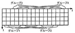 別の実施形態では、ダウンリンクの場合、クラスタはグループに分割される。各グループは、複数のクラスタを含んでいてもよい。図6は、代表的な分割例を示している。図6に示すように、グループ1−4は、グループ分けの結果として各グループに入れられたクラスタを指す矢印で示されている。或る実施形態では、各グループ内のクラスタは、帯域幅全体に亘って遠く離されている。或る実施形態では、各グループ内のクラスタは、チャネルコヒーレンス帯域幅、即ちその中のチャネル応答が概ね同じである帯域幅、よりも更に離されている。コヒーレント帯域幅の代表的な値は、多くのセルラーシステムについて100kHzである。これは、各グループ内の周波数ダイバーシティを改善し、グループ内のクラスタの少なくとも一部が高SINRを提供できる確率を上げることになる。クラスタは、グループに割り当てられる。グループベースのクラスタ割当の目的には、クラスタ指標付けのデータビットを減じ、これにより、クラスタ割当用のフィードバックチャネル(情報)と制御チャネル(情報)の帯域幅要件を緩和することである。グループベースのクラスタ割当は、セル間干渉を低減するためにも使用される。In another embodimentof group-based cluster allocation , in the case of the downlink, the clusters are divided into groups. Each group may include a plurality of clusters. FIG. 6 shows a typical division example. As shown in FIG. 6, groups 1-4 are indicated by arrows pointing to the clusters that are placed in each group as a result of grouping. In some embodiments, the clusters in each group are far apart across the entire bandwidth. In some embodiments, the clusters within each group are further separated than the channel coherence bandwidth, i.e., the bandwidth within which the channel response is approximately the same. A typical value for coherent bandwidth is 100 kHz for many cellular systems. This will improve frequency diversity within each group and increase the probability that at least some of the clusters in the group can provide high SINR. Clusters are assigned to groups. The purpose of group-based cluster allocation is to reduce the data bits for cluster indexing, thereby relaxing the bandwidth requirements of the feedback channel (information) and control channel (information) for cluster allocation. Group-based cluster assignment is also used to reduce inter-cell interference.