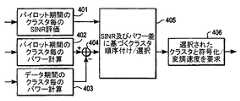 評価されたSINR値は、大きいものから順に並べられ、SINR値の大きいクラスタが選択される。或る実施形態では、選択されたクラスタは、システムがサポートする(低速ではあるが)信頼性のある送信を可能にする最小SINRよりも大きいSINR値を有している。選択されるクラスタの数は、フィードバック帯域幅及びリクエスト送信速度によって異なる。或る実施形態では、加入者は、常にできるだけ多くのクラスタに関する情報を送ろうと務め、そこから基地局が選択する。 The evaluated SINR values are arranged in descending order, and a cluster having a large SINR value is selected. In some embodiments, the selected cluster has a SINR value that is greater than the minimum SINR that allows reliable (albeit slow) transmissions supported by the system. The number of clusters selected depends on the feedback bandwidth and the request transmission rate. In some embodiments, the subscriber always tries to send information about as many clusters as possible, from which the base station selects.