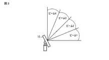 アンテナ11は、複数のアンテナ素子を鉛直方向に配列した1次元フェーズドアレイアンテナで構成される。アンテナ素子は、例えば、スロットアンテナで形成される。このスロット導波管を複数配列することで、仰角方向でのビーム方向を位相走査により電気的に制御できる。また、スロットアンテナを用いて機械的にビームを絞ることで、方位角方向に鋭い指向性が得られる。 The