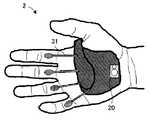 図4に示すように、インターフェース装置2が備える歪センサ31は、そのパッドが、操作者の指の中手指節間間接と近位指節間間接との間に接触するように構成されている。  As shown in FIG. 4, the