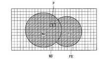 図2(c)で示されるように、距離情報画像G3(第1距離画像D1)において、被写体OB1は被写体OB2と比較して所定の原点位置に相当するステレオカメラVCからの距離が相対的に近く表現されているが、近距離領域に相当する被写体OB1と遠距離領域に相当する被写体OB2との領域境界に相当する領域MXは、立体視認が難しい現象が生じる。これは、後述する対応点探索を行う際に生じる誤差によって、境界線をはさんで被写体OB1の領域の近距離情報に被写体OB2の領域の遠距離情報が混入してしまうため、立体視が欠如した画像として表示される事情による。 As shown in FIG. 2C, in the distance information image G3 (first distance image D1), the subject OB1 is relatively far from the stereo camera VC corresponding to a predetermined origin position compared to the subject OB2. Although the expression is close, the region MX corresponding to the region boundary between the subject OB1 corresponding to the short-distance region and the subject OB2 corresponding to the long-distance region has a phenomenon that stereoscopic viewing is difficult. This is because there is a lack of stereoscopic vision because the long distance information of the area of the subject OB2 is mixed into the short distance information of the area of the subject OB1 across the boundary due to an error that occurs when performing the corresponding point search described later. Depending on the circumstances displayed as an image.