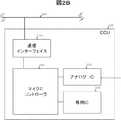 なお、各ECUは、図2Bにその一例として示したECU2100の様に、車載通信コントローラ209に接続するための通信インターフェイス2104と、通信インターフェイス2104に接続されるマイクロコントローラ2103、マイクロコントローラ2103にそれぞれ接続される専用IC2101、アナログIO2102によって構成される。このアナログIC2102は機械系(メカ)につながる。 Each ECU is connected to a