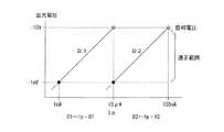また、前記したように、反転アンプ12の出力と差動増幅器22の出力は並行して出力されていて、その出力のうち適正範囲にあるものを選択出力するだけであるので、たとえ、図3に示しているように、レンジの境界の10μAを通過するようにIp(t)が変動しても、遅延なく有効値を選択して、その電流に対応した電圧信号Dout(t)を出力させる。 Further, as described above, the output of the inverting