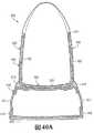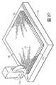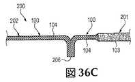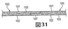 布帛は、ファイバ、フィラメントまたは糸から製造され、略2次元構造を有する(すなわち、長さおよび幅が、厚さよりも実質的に大きい)製品であると定義することができる。一般的に、布帛は、機械操作による布帛または不織布帛として分類することができる。機械操作による布帛は、通常、織機または編機を含む機械工程により、単糸または複数糸を織成またはインターループ(例えば、編成)することによって形成される。不織布帛は、接着、融着、連結または結合されたフィラメントのウェブまたはマットである。一例として、不織布帛は、移動中のコンベアなどの表面上に複数のポリマーフィラメントをランダムに堆積させることによって形成することができる。様々なエンボス加工やカレンダ加工を利用して、不織布帛を略均一厚にしたり、不織布帛の片面または両面にテクスチャを付与したり、不織布帛内でフィラメント同士を更に接着または融着したりすることもできる。スパンボンド不織布帛は、10〜100ミクロンの断面厚を有するフィラメントから形成される一方、メルトブロー不織布帛は、10ミクロン未満の断面厚を有するフィラメントから形成される。 Fabrics can be defined as products made from fibers, filaments or yarns and having a generally two-dimensional structure (ie, the length and width are substantially greater than the thickness). In general, fabrics can be categorized as mechanically operated fabrics or non-woven fabrics. Fabric by mechanical operation is usually formed by weaving or interlooping (for example, knitting) a single yarn or a plurality of yarns by a mechanical process including a loom or a knitting machine. Nonwoven fabrics are webs or mats of filaments that are bonded, fused, joined or bonded. As an example, a nonwoven fabric can be formed by randomly depositing a plurality of polymer filaments on a surface such as a moving conveyor. Utilizing various embossing and calendering processes, the nonwoven fabric is made to have a substantially uniform thickness, a texture is imparted to one or both sides of the nonwoven fabric, and filaments are further bonded or fused within the nonwoven fabric. You can also. Spunbond nonwoven fabrics are formed from filaments having a cross-sectional thickness of 10 to 100 microns, while meltblown nonwoven fabrics are formed from filaments having a cross-sectional thickness of less than 10 microns.