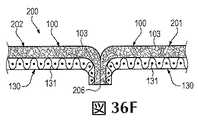 製品の中には1種類の布帛から形成されているものもあるが、様々な領域に異なる特性を付与するために、2種類以上の布帛から形成されている製品も数多くある。一例として、シャツの肩領域および肘領域を、耐久性(例えば、耐摩耗性)や耐伸張性を付与する布帛から形成し、その他の領域を、通気性や快適性、伸縮性、吸湿性を付与する布帛から形成することもできる。別の例として、履物の甲部が、様々な種類の布帛およびその他の材料(例えば、ポリマー発泡体、皮革、合成皮革)から形成された多数の層を含む構造を有していてもよく、これらの層の一部は、異なる特性を付与するために異なる種類の布帛から形成された領域を含んでいてもよい。更に別の例として、バックパックのストラップが、非伸縮性の布帛要素から形成され、バックパックの下部領域が、耐久性および耐水性のある布帛要素から形成され、バックパックのその他の部分が、快適かつ柔軟な(compliant)布帛要素から形成されていてもよい。したがって、製品の様々な部位に異なる特性を付与するために、様々な種類の布帛を組み込んだ製品が数多くある。 Some products are formed from one type of fabric, but many products are formed from two or more types of fabrics to impart different properties to various regions. As an example, the shirt shoulder region and elbow region are formed from a fabric that imparts durability (for example, abrasion resistance) and stretch resistance, and the other regions have breathability, comfort, stretchability, and moisture absorption. It can also be formed from a fabric to be applied. As another example, the upper of the footwear may have a structure that includes multiple layers formed from various types of fabrics and other materials (e.g., polymer foam, leather, synthetic leather) Some of these layers may include regions formed from different types of fabrics to impart different properties. As yet another example, a backpack strap is formed from a non-stretchable fabric element, a lower region of the backpack is formed from a durable and water resistant fabric element, and the other portions of the backpack are: It may be formed from a comfortable and compliant fabric element. Accordingly, there are many products that incorporate various types of fabrics to impart different properties to various parts of the product.