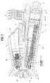 図3は、図1の歯列矯正ケアシステムに使用されるのに適切な、精査下の物体の情報を得るのに使用される携帯スキャナ14の斜視図である。図2の投影システム46および電子画像形成装置56が、スキャナのハウジング65内に含まれる。ハウジング65は、人の手で保持されるサイズおよび形状である。スキャナ14は、先端68を有する細長い遠位部分66を含む。先端68は、口腔内部の解剖学的構造を走査するのを可能にするように、ヒトの口腔内に挿入されその中で動くことができるような、サイズおよび形状である。加熱ミラー(図示せず)が、先端68の下側に配置され、スキャナの光学素子から物体へ投影パターンを方向づけ、反射したパターンを物体から電子画像形成装置56に関連した図7の画像形成光学素子108へ向けて方向づける。ミラーハウジングは、ミラーを加熱するA/C導電性加熱コイルを有する。ミラーはおよそ40度まで加熱され、スキャナが生体内で使用されているときにミラーが曇るのを防止する。 FIG. 3 is a perspective view of a