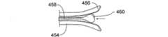 図4N及び4Oは、張引可能な部材を備える機械的膨張具の設計の断面図である。図4Nは、外側部材454を備える機械的膨張具を示す図である。外側部材454は、同外側部材454の末端部上に1つ以上の湾曲可能な領域456を備える。機械的膨張具は、内部の張引可能な部材458を更に備える。内部の張引可能な部材458は、同内部の張引可能な部材458の末端部上に拡張領域460を備える。図4Oにおいて、内部の張引可能な部材458は、基端方向に張引される。これにより、湾曲可能な領域456上に径方向に作用する力が発揮され、同湾曲可能な領域456は、径方向に力を作用させながら径方向に湾曲する。この力は、組織の部位を膨張したり、置き換えたりすることに使用可能である。外側部材454は、略直線的であってもよく、1つ以上の湾曲した、或いは、傾斜した領域を備えてもよい。内部の張引可能な部材458は、1つ以上の管腔を備える。 4N and 4O are cross-sectional views of a mechanical expander design with a tensionable member. FIG. 4N shows a mechanical inflator with an