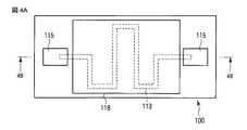 なお、均熱部材118の形状や大きさ等は、図4Aに示すようなものには限定されない。しかしながら、前記のような熱を拡散させる効果を得るために、均熱部材118は、少なくとも抵抗パターン113が形成されている位置の直上にあたる、抵抗パターン113に対応する位置には設けられていることが好ましい。 Note that the shape, size, and the like of the soaking