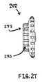 図2R−2Uは、引張車輪(202)をさらに詳細に示す。図2Rおよび2Tに示されるように、引張車輪(202)は、さらに大きい牽引力を提供するように、その外面(277)上に、隆起(275)および/またはグリップ等の突出特徴を備えてもよい。引張車輪(202)の内面(279)は、図2Sおよび2Uに示されるように、放射状に配設された戻り止め(226)を含有する。戻り止め(226)は、均等に離間した放射状配設にあるが、他の好適な配設が使用されてもよい。一実施例として、いくつかの変化例では、引張車輪は、相互から均一に離間していない、および/または放射状構成を形成しない、戻り止めを備えてもよい。戻り止め(226)は、ボビン(216)の中の軸受(228)と係合するように構成される。加えて、この変化例では、引張車輪(202)の中心軸は、歯車(220)の長方形の要素(232)(図2N)と係合する長方形の戻り止め(245)を備える。しかしながら、引張車輪および歯車の他の変化例は、1つ以上の戻り止めと、相互に係合するように構成される異なるサイズおよび/または形状の対応する要素とを備えてもよい。また、いくつかの変化例では、引張車輪は、(例えば、引張車輪とボビンとの間の牽引力を増進するように)その外面上の全体または一部分上に高摩擦材料を含んでもよい。引張車輪をボビンに係合するために、任意の好適な機構または材料が、引張車輪の表面(例えば、内面)上で使用されてもよいことを理解されたい。 2R-2U show the tensioning wheel (202) in more detail. As shown in FIGS. 2R and 2T, the tensioning wheel (202) may also include protruding features, such as ridges (275) and / or grips, on its outer surface (277) to provide greater traction. Good. The inner surface (279) of the tensioning wheel (202) contains detents (226) arranged radially as shown in FIGS. 2S and 2U. The detents (226) are in an evenly spaced radial arrangement, but other suitable arrangements may be used. As one example, in some variations, the tensioning wheels may include detents that are not uniformly spaced from each other and / or do not form a radial configuration. The detent (226) is configured to engage the bearing (228) in the bobbin (216). In addition, in this variation, the central axis of the tensioning wheel (202) includes a rectangular detent (245) that engages the rectangular element (232) (FIG. 2N) of the gear (220). However, other variations of tensioning wheels and gears may include one or more detents and corresponding elements of different sizes and / or shapes configured to engage one another. Also, in some variations, the tensioning wheel may include a high friction material on all or a portion of its outer surface (eg, to enhance traction between the tensioning wheel and the bobbin). It should be understood that any suitable mechanism or material may be used on the surface (eg, the inner surface) of the tensioning wheel to engage the tensioning wheel with the bobbin.