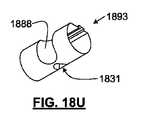 テザーがロックデバイス(1885)を通して送られた後に、引張ワイヤ(1889)は、ロック要素(1885)をそのロック位置に移行させるように(例えば、引張ワイヤを引張ることによって)作動させられてもよい。プラグ(1893)は、引張ワイヤ(1889)上の切り込み(1897)(図18R、18S、および18W)に干渉するように構成される、切り込み(1831)(図18U)を含む。より具体的には、引張ワイヤ(1889)が作動させられると、引張ワイヤ(1889)上の切り込み(1897)がプラグ(1893)上の切り込み(1831)に係合し、それにより、プラグ(1893)を回転させる。プラグの回転は、テザーを固定させることに役立つ。加えて、プラグ(1893)は、プラグが回転させられるにつれて、テザーに係合するように構成され、それにより、テザーを定位置でロックすることに役立つ、段(1899)を含む。回転可能なプラグを使用して、および/または任意の他の好適な機構を使用して、テザーをロックするための他の好適なデバイスおよび方法も、適宜に採用されてもよい。テザーロックデバイスは、例えば、その全てが、それらの全体で参照することにより以前に組み込まれた、米国特許出願公開第2006/190030A1号および第2006/0122633A1、ならびに、2009年6月8日出願の米国特許出願第12/480,568号および2009年10月10日出願の米国仮出願第61/104,681号で説明されている。 After the tether is fed through the locking device (1885), the puller wire (1889) may be actuated to transition the lock element (1885) to its locked position (eg, by pulling on the puller wire). . Plug (1893) includes a cut (1831) (FIG. 18U) configured to interfere with cut (1897) (FIGS. 18R, 18S, and 18W) on pull wire (1889). More specifically, when tension wire (1889) is actuated, notch (1897) on tension wire (1889) engages notch (1831) on plug (1893), thereby causing plug (1893). ). The rotation of the plug helps to fix the tether. In addition, the plug (1893) includes a step (1899) that is configured to engage the tether as the plug is rotated, thereby helping to lock the tether in place. Other suitable devices and methods for locking the tether using a rotatable plug and / or using any other suitable mechanism may be employed as appropriate. Tether lock devices are, for example, US Patent Application Publication Nos. 2006 / 190030A1 and 2006 / 0122633A1, all of which have been previously incorporated by reference in their entirety, as well as those filed on June 8, 2009. No. 12 / 480,568 and US Provisional Application No. 61 / 104,681 filed Oct. 10, 2009.