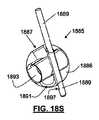 例えば、図18Q−18Xは、回転可能なプラグを備えるロック要素の変化例を示し、ロック要素は、テザーをロックするために引張ワイヤ機構を使用する。そこで示されるように、ロック要素(1885)は、略球状ロック部材(1886)と、ロック部材(1886)の管腔(1833)内に配置される、回転可能なプラグまたはカム(1893)と、ロック部材(1886)(図18R)のチャネル(1839)を通過する引張ワイヤ(1889)とを備える。図18Q−18Sは、その解除または開放位置にあるロックデバイス(1885)を図示し、図18V−18Xは、そのロックまたは閉鎖位置にあるロックデバイス(1885)を図示する。 For example, FIGS. 18Q-18X show a variation of a locking element with a rotatable plug, which uses a pull wire mechanism to lock the tether. As shown there, the locking element (1885) includes a generally spherical locking member (1886) and a rotatable plug or cam (1893) disposed within the lumen (1833) of the locking member (1886); A tensioning wire (1889) passing through the channel (1839) of the locking member (1886) (FIG. 18R). 18Q-18S illustrate the locking device (1885) in its unlocked or open position, and FIGS. 18V-18X illustrate the locking device (1885) in its locked or closed position.