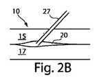 デバイスの別の実施例が、図2Bに示されている。この図では、デバイス10は、流体を送達および/または除去することができる導管27を含む。一実施形態では、生理食塩水等の流体が、導管27を通して送達され、それにより、表皮15と真皮17との間に流体のプール領域を生成する。任意で、例えば、治療または診断目的で、導管27を使用して、粒子等の物質が流体のプール領域の中へ送達されてもよい。場合によっては、皮膚10内の流体のプール領域の生成後に、以前に論議されているように、流体の少なくとも一部分が、分析のために導管27(または場合によっては別の導管)を通して除去されてもよい。  Another embodiment of the device is shown in FIG. 2B. In this figure, the