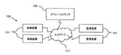 図1は、監視し、制御し、少なくとも1つの監視装置および/または少なくとも1つの制御装置に通信する本発明のシステム100を示す。システム100は、少なくとも1つの監視装置110および/または1つの制御装置111に通信するオペレーションセンタ105を含む。好適な実施形態では、オペレーションセンタ105と装置110および111との間の双方向通信が行える。通信は一方向であっても双方向であってもよい。通信は、有線ネットワーク、無線ネットワーク、ZIGBEE(登録商標)ネットワーク、BLUETOOTH(登録商標)ネットワーク、Z−waveネットワーク、WiFiネットワーク、WiMaxネットワーク、RFネットワーク、構内ネットワーク(LAN)、インタラクトネットネットワーク、広域ネットワーク(WAN)、携帯電話ネットワーク、固定配線電話ネットワーク、900MHz無線ネットワーク、および衛星ネットワークを含むがそれらに限定されない、当該技術において既知である任意の通信ネットワーク115上で行うことができる。好適な実施形態では、ネットワークは固定ネットワークである。たとえば、固定ネットワークは網目状ネットワークまたは星状ネットワークとすることができる。また、装置110および111とオペレーションセンタ105とは直接通信することができる、あるいは、継電器、中継器、ゲートウェイ、またはメッセージを受信および再送信できるその他の装置などの中継装置を通じて通信することができる。 FIG. 1 illustrates a