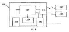 図3は、制御装置300の概略図である。制御装置300は、プロセッサ305を備える。プロセッサ305は、出力装置340を制御する少なくとも1つの出力ポート310に結合される。プロセッサ305は、信号を送受信する送受信機320にも結合される。プロセッサ305は、出力ポート310に通信可能に結合される。出力ポート310は、少なくとも1つの出力装置340に接続される。各出力装置340は同じ目的を有することができる、あるいは各出力装置340は異なる目的を有することができる、あるいはその組み合わせも可能である。出力装置340は、制御装置300内、または図示されるように制御装置300外に配置されうる。さらに出力装置340は、制御装置300に装着することができる、あるいは制御装置300から離すことができる。出力装置340は、有線または無線通信路を通じて出力ポート310に通信する。好適な実施形態では、出力装置340は双方向通信が可能である。好適な実施形態では、制御装置300は、監視装置の一体的な部分である。上記実施形態では、制御装置と監視装置は、同一のプロセッサおよび/または送受信機を共有することができる。