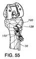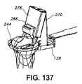 図49aに示すように、スタイラス160の本体162は、基準面168および接続軸170を画定する。図示のスタイラス160はまた、本体162に枢動可能に取り付けられた2つの指示部材172および174を含む(図49a〜49eで示す)。いくつかの実施形態では、指示部材172および174は、基準面168に対して実質上平行な平面内で接続軸170の周りを回転することができるが、他の実施形態では、指示部材172および174は、固定の向きおよび/または平行でない向きで本体162に取り付けることもできる。スタイラス160の特定の用途に応じて、指示部材172および174は、位置合わせ指示器、切断ガイド(たとえば、指示部材172および174の一方もしくは両方上の外側案内表面176)、他の器具に対する取付け点として、または他の機能に対して機能することができる。スタイラス160のいくつかの用途については、以下に説明する。 As shown in FIG. 49 a, the