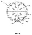 図1〜15を参照し、本発明の原理を組み込むペンキャップの第1の実施形態を示すが、その原理は、薬剤送達装置の主要部、例えばペン本体からペンキャップを取り除くために、注射針ハブに係合したり、解放したりする望ましい機能性をもたらす他の多くの配置によって実現することができる。図16〜20に、そのような多くの代替例を示す。 Referring to FIGS. 1-15, a first embodiment of a pen cap incorporating the principles of the present invention is shown, which principles include an injection needle for removing a pen cap from a major portion of a drug delivery device, such as a pen body. Many other arrangements that provide the desired functionality of engaging and releasing the hub can be achieved. Figures 16-20 illustrate many such alternatives.
