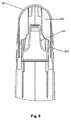 外側筐体部は柔軟性があり、少なくとも1つの把持手段および把持手段に関連する作動手段が外側筐体部に一体形成され、これにより、少なくとも1つの把持手段は、関連する1対の作動領域により外側筐体部が柔軟に変形することに基づいて作動する。このため、1、2または3つの把持システムを備えるキャップ部は、例えば1つの射出成形部材として製造することができる。また、キャップは、例えば、2つの把持システム全体を完全に制御する配置となるように、把持構造を移動させて注射針キャップに係合させるように作用する別個のボタン部材を備えてもよい。 The outer housing portion is flexible, and at least one gripping means and an actuation means associated with the gripping means are integrally formed in the outer housing portion, whereby the at least one gripping means is associated with a pair of associated actuation areas. This operates based on the fact that the outer casing portion is flexibly deformed. For this reason, a cap part provided with 1, 2, or 3 gripping systems can be manufactured as one injection-molded member, for example. The cap may also include a separate button member that acts to move the gripping structure to engage the needle cap, for example, so that the entire two gripping systems are in a controlled arrangement.