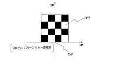 図2に示すように、校正用パターンPPは、市松模様とすることができ、市松模様の白黒の交点(格子点)の位置及び格子点間の距離はパターンマット座標系(xp, yp)で表される。