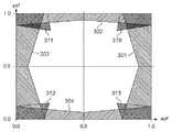 同様に、画素位置(xoc、yoc)の上に隣接する画素位置(xoc、yoc−1)に対して上記の射影変換の逆変換を施すことで得られる画素位置が(p5、q5)であったとする。このとき、p5の整数部がxiと一致し、且つq5の整数部がyiと一致するような、xof、yofの範囲が領域304である。然るに、上記の式で求めたxof、yofによって表される位置(xof、yof)が領域304内に位置する場合、画素位置(xoc、yoc−1)に対して上記の射影変換の逆変換を施すことで得られるp5、q5のそれぞれの整数部はxi、yiと一致する。  Similarly, the pixel position obtained by performing the inverse transformation of the above projective transformation on the pixel position (xoc, yoc-1) adjacent to the pixel position (xoc, yoc) is (p5, q5). Suppose. At this time, the