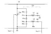この構成により、リレー67aに抵抗R1を介して制御電圧Vsc1が供給されたときに、リレー67aがオン状態(接点回路が閉じた状態)に移行する。このため、可変コンデンサ回路13aに対して2つの固定コンデンサ63a,64aが並列接続された状態となることから、可変コンデンサ回路13aおよび容量付加回路13cの全体としての静電容量値の容量可変範囲は上記した下限値CLOW2(=CLOW1+Cco/2)および上限値CHIGH2(=CHIGH1+Cco/2)で規定される範囲となる。一方、制御電圧Vsc1の供給が停止されたときには、リレー67aはオフ状態(接点回路が開いた状態)に移行する。このため、可変コンデンサ回路13aに対して2つの固定コンデンサ63a,64aが非並列接続な状態となることから、可変コンデンサ回路13aおよび容量付加回路13cの全体としての静電容量値の容量可変範囲の下限値および上限値は、可変コンデンサ回路13a単体の容量可変範囲の下限値CLOW1および上限値CHIGH1となる。With this configuration, when the control voltage Vsc1 is supplied to the