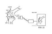 など、多々ある。Currently, the use of pins on the femur and tibia allows an array to be attached to the bone. Such attachment helps in the spatial localization of the knee / hip joint during surgery. These arrangements are within a recognized software system that allows an operator to visualize a joint in a three-dimensional manner while placing a selected implant on a bone by infrared optics or electromagnetic devices (see FIGS. 21 and 22). Identified for reproducing information.