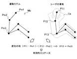 図6Bは、有効性スコアを算出するための第2の手法について説明するための説明図である。図中左上には、骨格データとしての運動モデルMbに含まれる教師の骨格を構成する3つの特徴点位置Pm1、Pm2及びPm3が示されている。図中右上には、入力画像から抽出されるユーザUaの骨格を構成する3つの特徴点位置P11、P12及びP13が示されている。特徴点位置Pm1及びP11は頭、特徴点位置Pm2及びP12は肩、特徴点位置Pm3及びP13は股関節にそれぞれ対応し得る。スコア算出部160は、例えば、位置Pm3及びP13が重なるようにこれら特徴点位置を調整した上で、位置Pm1からの位置P11の変位と位置Pm2からの位置P12の変位との和を計算し、算出された和が小さいほど、有効性スコアの値を大きくする。(5-2) Second Method FIG. 6B is an explanatory diagram for describing a second method for calculating an effectiveness score. In the upper left of the figure, three feature point positions Pm1, Pm2, and Pm3 constituting the teacher's skeleton included in the exercise model Mb as skeleton data are shown. In the upper right of the figure, three feature point positions P11, P12, and P13 constituting the skeleton of the user Ua extracted from the input image are shown. The feature point positions Pm1 and P11 may correspond to the head, the feature point positions Pm2 and P12 may correspond to the shoulder, and the feature point positions Pm3 and P13 may correspond to the hip joint, respectively. The