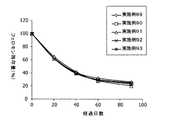 表7、表9、表11、表13及び表15に示す重合組成、後工程組成で実施例1と同様に重合体粒子水分散体と徐放性製剤を作製し、実施例1と同様の試験を実施した。フェロモン物質以外の気化活性物質として、芳香剤である青葉アルコール(沸点156℃)、リモネン(沸点176℃)及びシトラール(沸点229℃)、農薬であるダイアノジン(120℃分解)、消臭剤であるメタクリル酸ラウリル(沸点305℃)を用いた。結果を表8、表10、表12、表14及び表16並びに図4〜10に示す。Examples 44-93, Comparative Examples 16-44