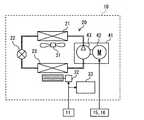 制御装置33は、利用者から空調が求められると、電動圧縮機41、電動ファン31、32を制御することにより空調を提供する。このとき、電動圧縮機41は、高電圧によって駆動されるから、冷凍サイクル装置20は高効率の運転を実行できる。 The