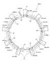 また、上述した各例においては、例えば図12や図17に示すように、芯部材7として板状の基板材70を利用する形態を例示して説明した。しかし、芯部材7は、このような基板材70に限定されるものではない。第2基準軸X2のそれぞれに沿って配置された複数の軸芯部72とこれら複数の軸芯部72を連結する連結部71とを有していれば、芯部材7は、例えば図18に例示するような環状部材79であってもよい。図18には、芯部材7として矩形環状の環状部材79を例示したが、当然ながら円環状であってもよい。 Moreover, in each example mentioned above, as shown, for example in FIG.12 and FIG.17, the form which utilizes the plate-shaped board |