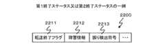 図22に第1終了ステータス又は第2終了ステータスの一例(以下、データ2200と称する。)を示している。同図に示すように、このデータ2200には、転送終了フラグ2211、障害情報2212、誤り検出符号2213などの情報が含まれている。  FIG. 22 shows an example of the first end status or the second end status (hereinafter referred to as data 2200). As shown in the figure, the